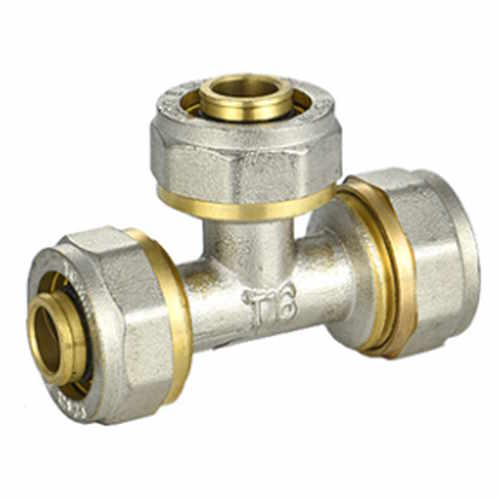 Фитинг обжимной – тройник латунный никелированный для соединения металлопластиковых (металлополимерных) труб 16 мм .