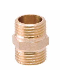 Латунный никелированный фитинг для соединения элементов трубопровода равного диаметра 1". Резьба – наружная/наружная, цилиндрическая трубная. Предусмотрен участок корпуса шестигранной формы, под гаечный ключ.