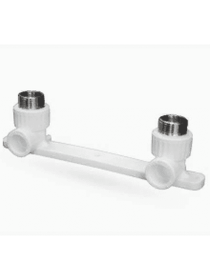 Комплект настенный для смесителя представляет из себя комбинированный полипропиленовый фитинг. Используется для монтажа к трубопроводу Dn 25 мм и установки смесителя непосредственно на стене. Присоединительный размер внутренней резьбы 3/4. Латунные части производятся методом горячего штампования, пластиковые - методом литья под давлением.